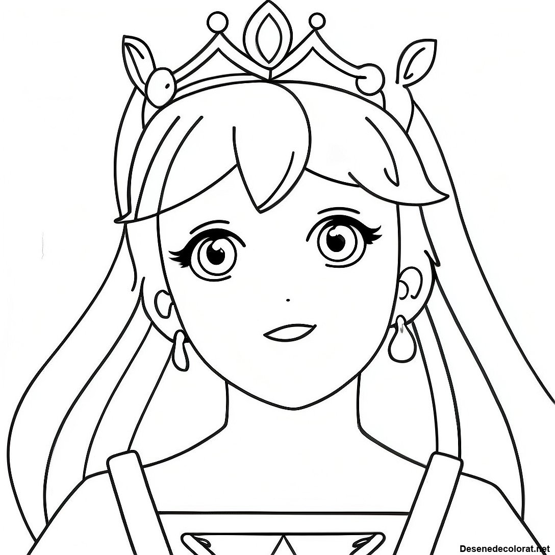 Pagini de colorat cu prințesă frumoasă cu coroană strălucitoare