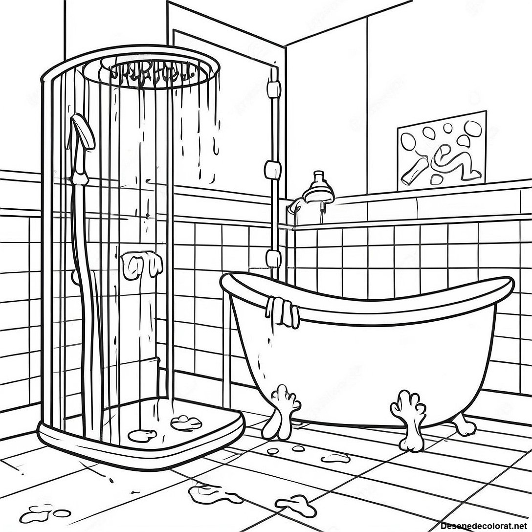 Descarcă PDF imprimabil pentru Pagini De Colorat Cu Scenă Colorată De Duș