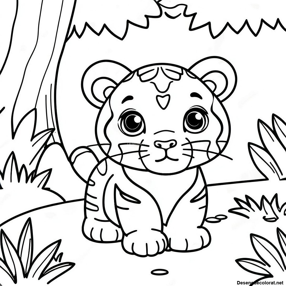 Pagini De Colorat Cu Tigrișori În Junglă