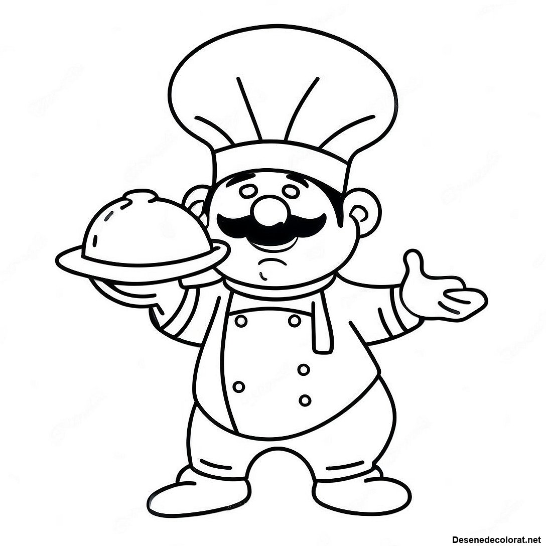 Pagini De Colorat Cu Un Bucatar Amuzant Cu O Palarie Mare 127682 61259