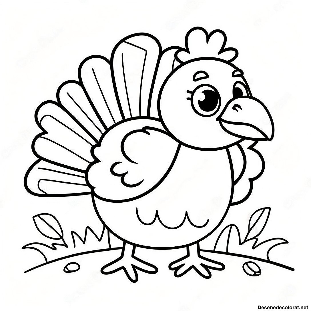 Pagini De Colorat Cu Un Curcan Pui Amuzant