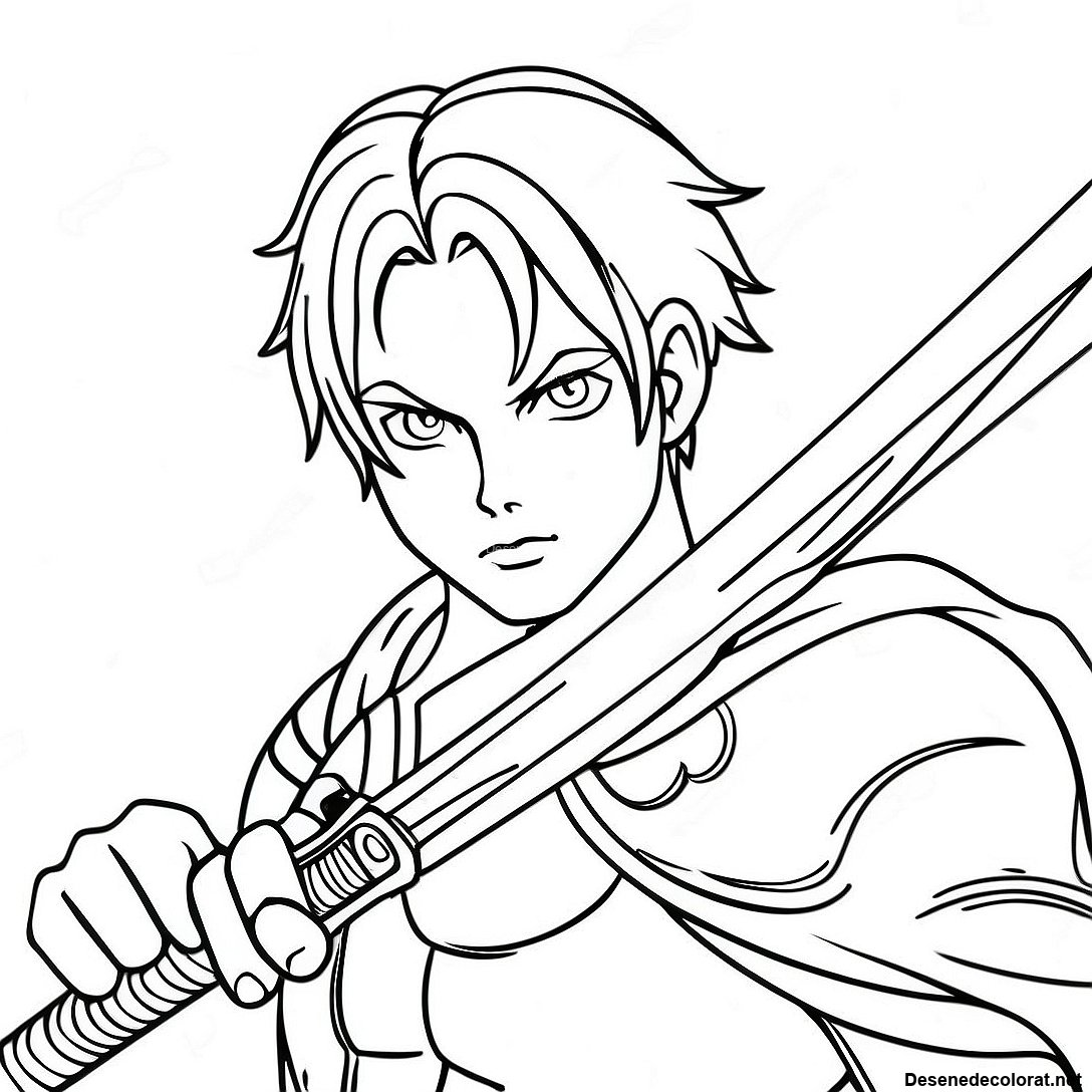 Pagini De Colorat Cu Un Erou Manga Cu Sabie