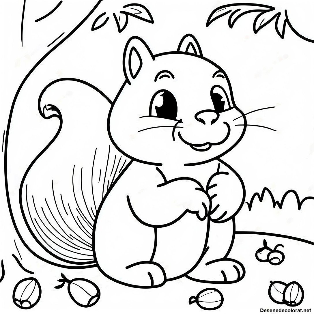Pagini De Colorat Cu Veverita Fericita Cu Ghinde