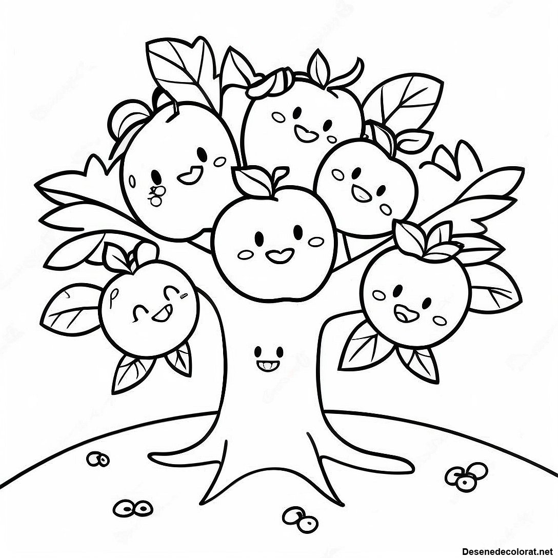Descarcă PDF imprimabil pentru Pom De Măr Drăguț Cu Mere Zâmbitoare - Pagina De Colorat