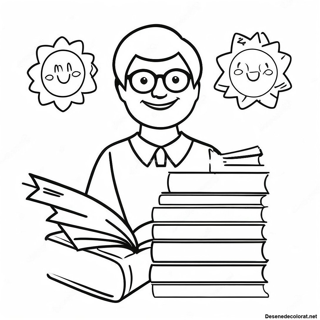 Descarcă PDF imprimabil pentru Profesor Inspirațional Cu Cărți - Pagină De Colorat