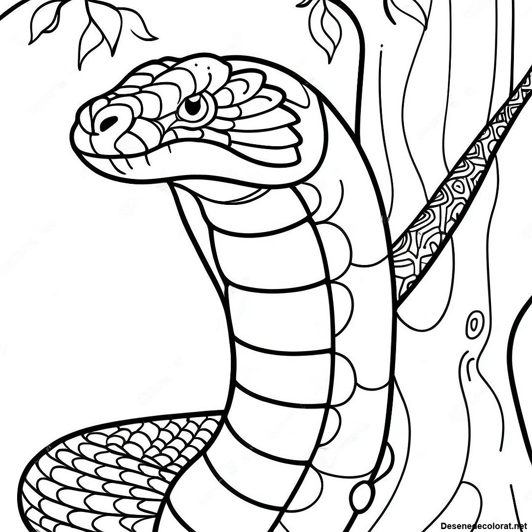 Regele Cobra Infasurat In Jurul Unui Copac Pagina De Colorat 91072 31015