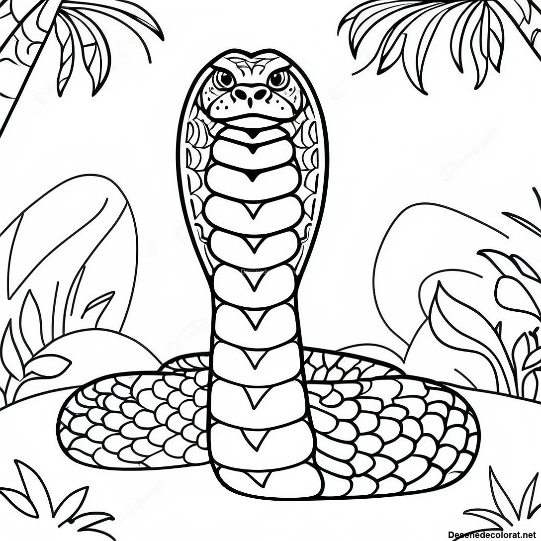 Descarcă PDF imprimabil pentru Regele Cobra Majestuos În Junglă - Pagină De Colorat