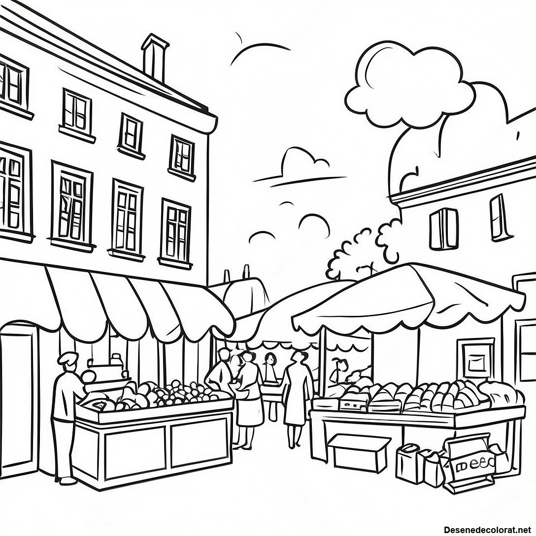 Descarcă PDF imprimabil pentru Scenă De Piață Franceză Colorată - Pagină De Colorat