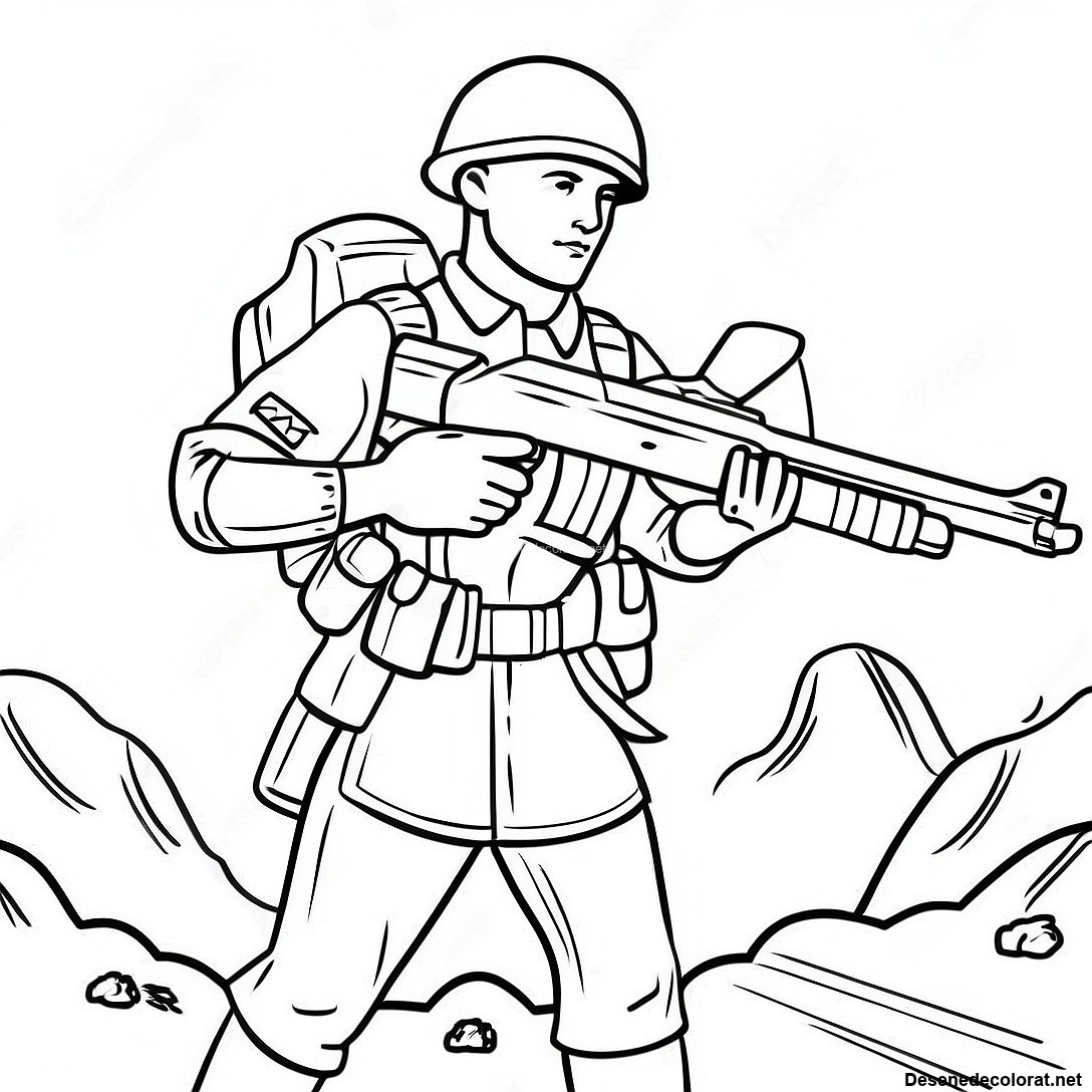 Descarcă PDF imprimabil pentru Soldat Curajos În Luptă - Pagina De Colorat
