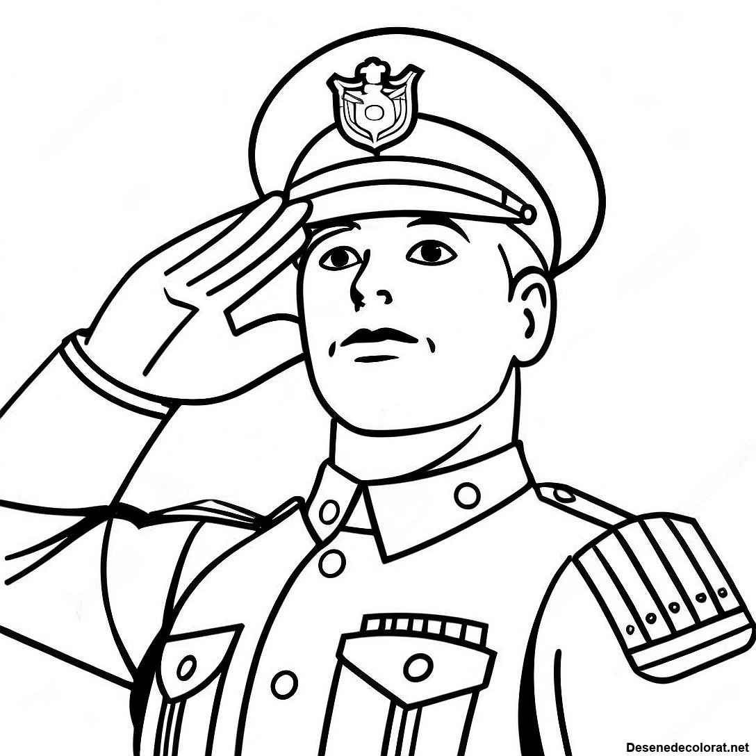 Descarcă PDF imprimabil pentru Soldat Erou Salutând - Pagina De Colorat